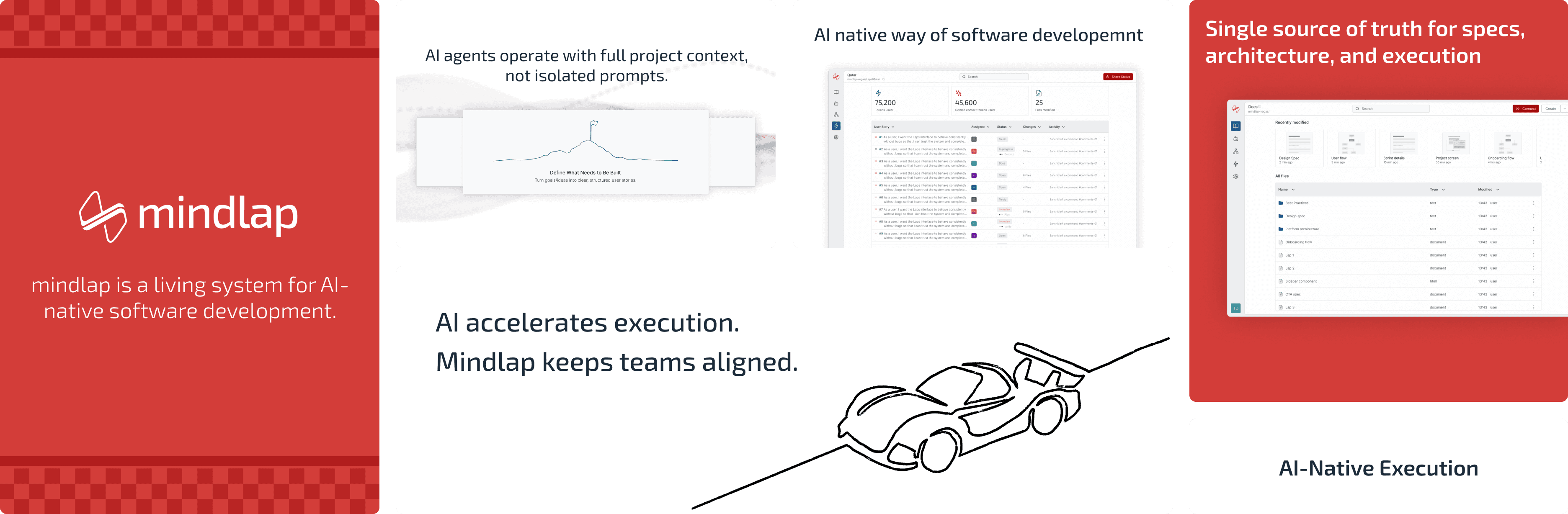 MindLap treats specs not as documentation, but as executable infrastructure continuously synchronized with code, decisions, and outcomes across each Lap.